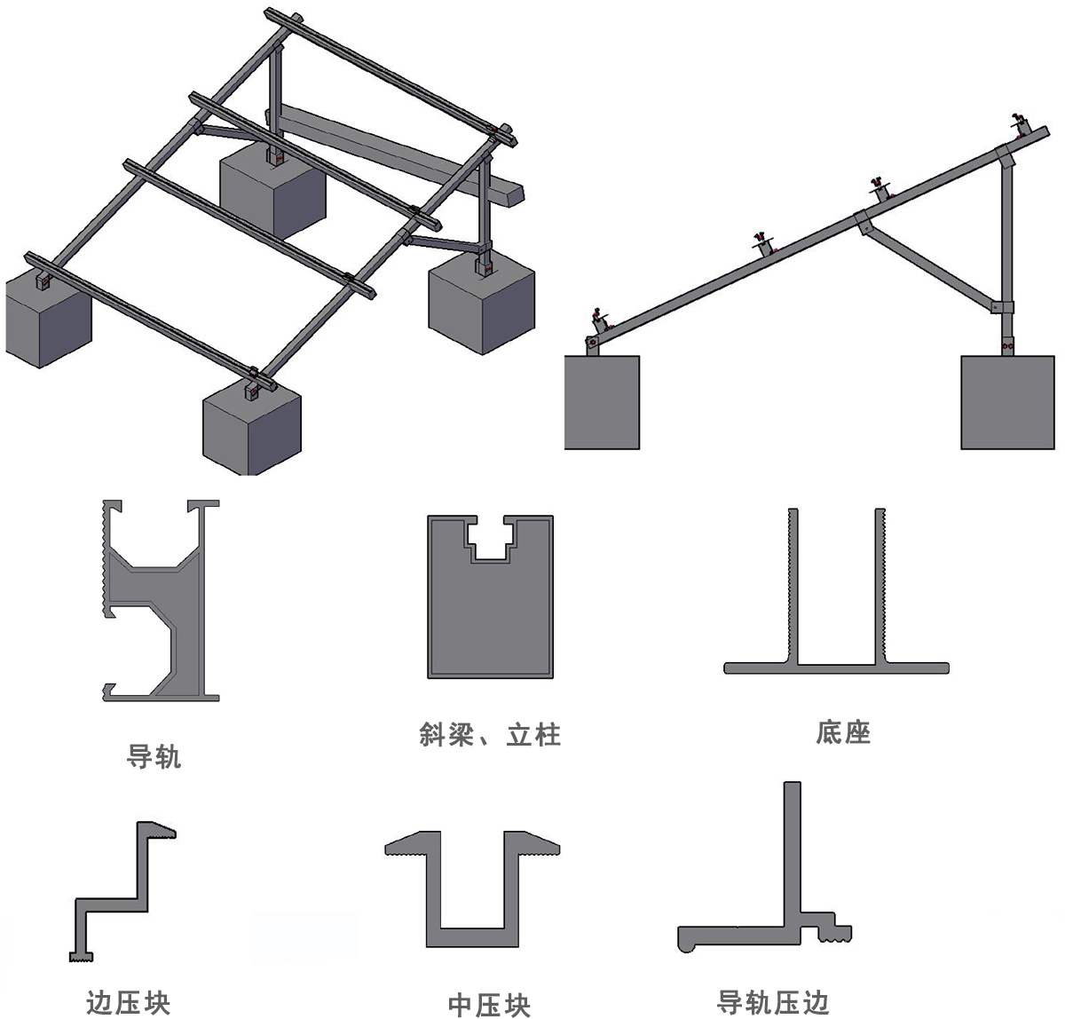 中壓塊與邊壓塊進行固定太陽能組件面板;