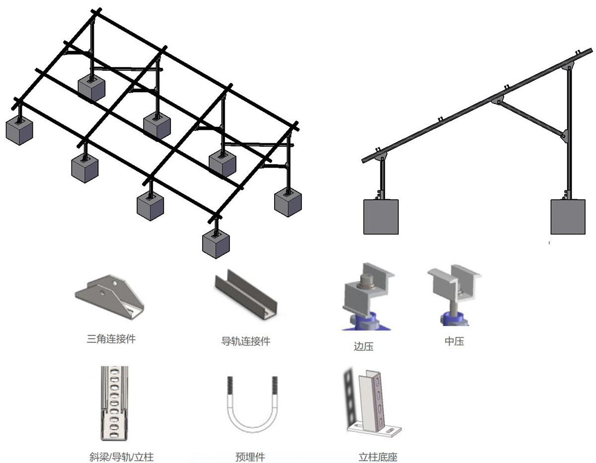 水泥平面和彩鋼瓦三角架光伏支架系統